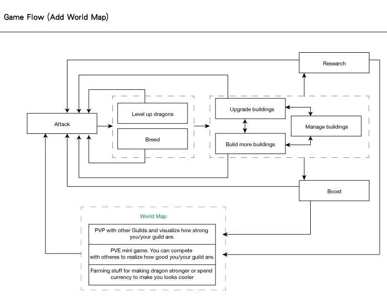 Based on competitor research, the team learned that a high social interaction game feature is key to driving user excitement and extending the game life cycle. Therefore, the team aims to establish a web-view platform with an MMO PVP feature to enable users to engage with each other.
