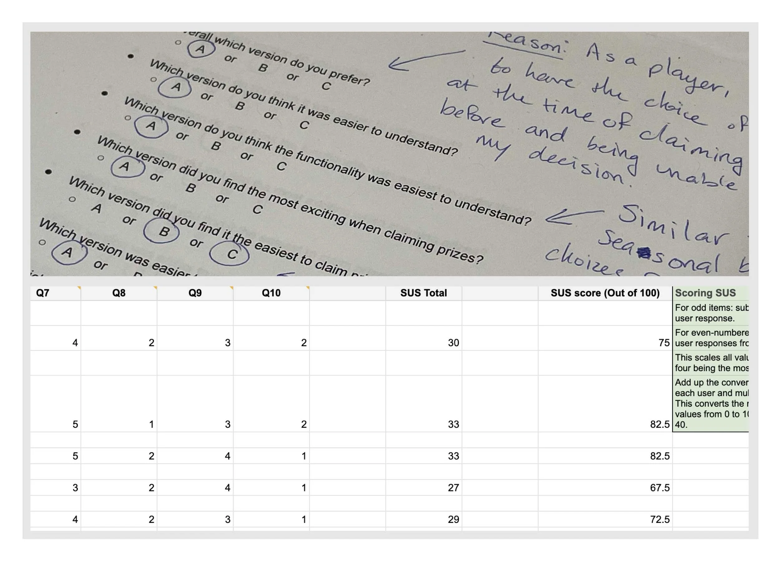 Conduct on-site AB testing with 10 players and utilize the System Usability Scale (SUS) to assess the build.